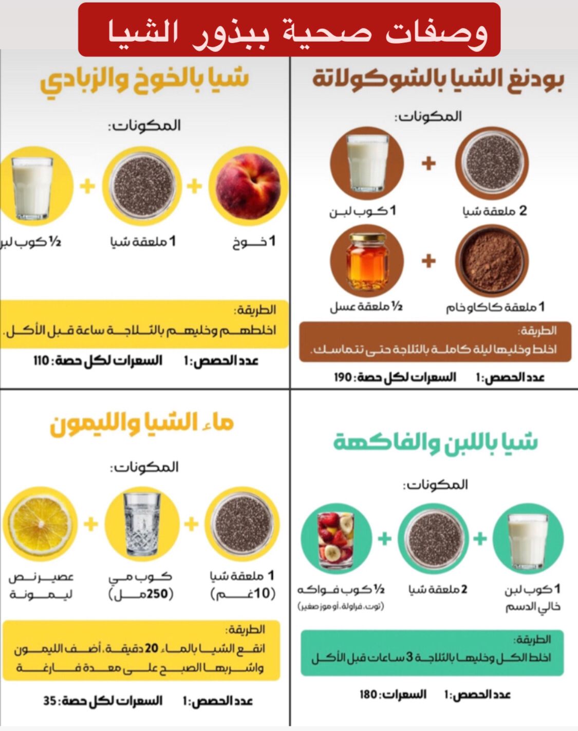 استخدامها في تحضير الحلويات الصحية مثل بودينغ الشيا